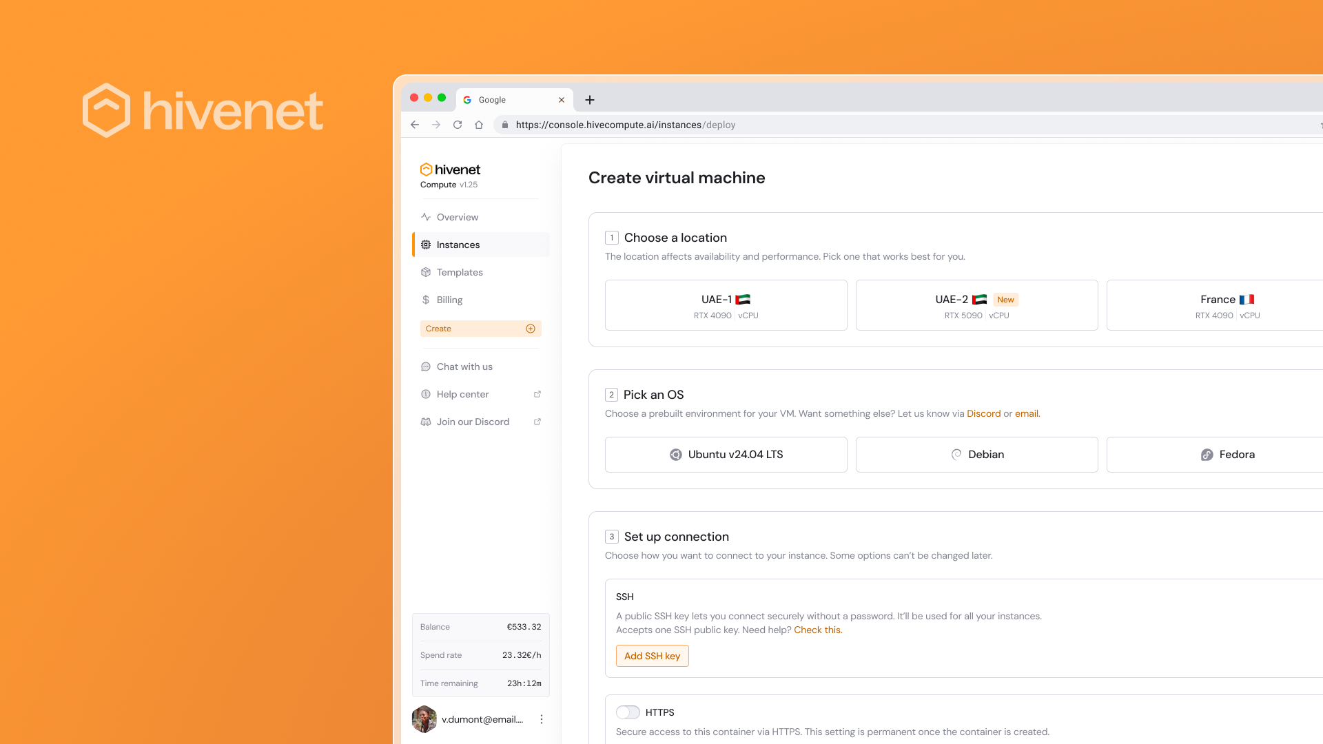 The rest should feel familiar. You still choose location and hardware the same way, and you still manage everything from the same Compute console.